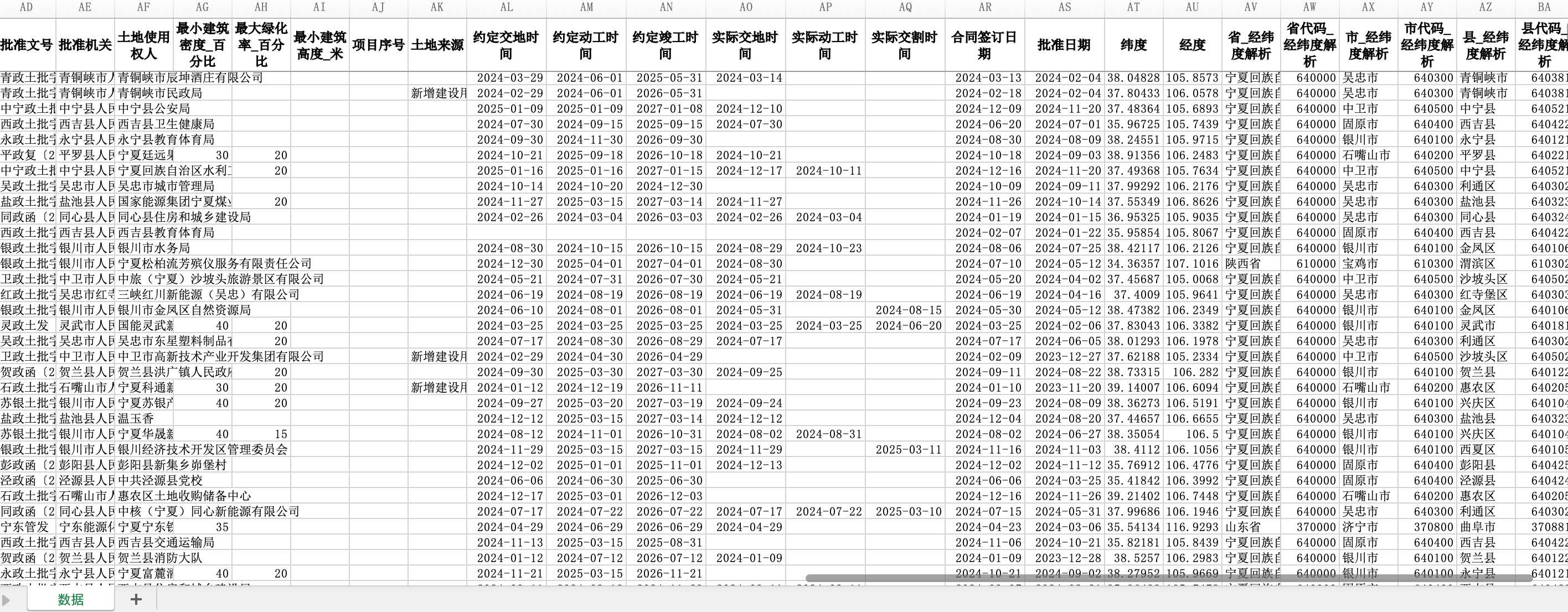 宁夏自治区土地出让结果公告数据宁夏土地出让地块交易明细(2000-2024年,含经纬度)