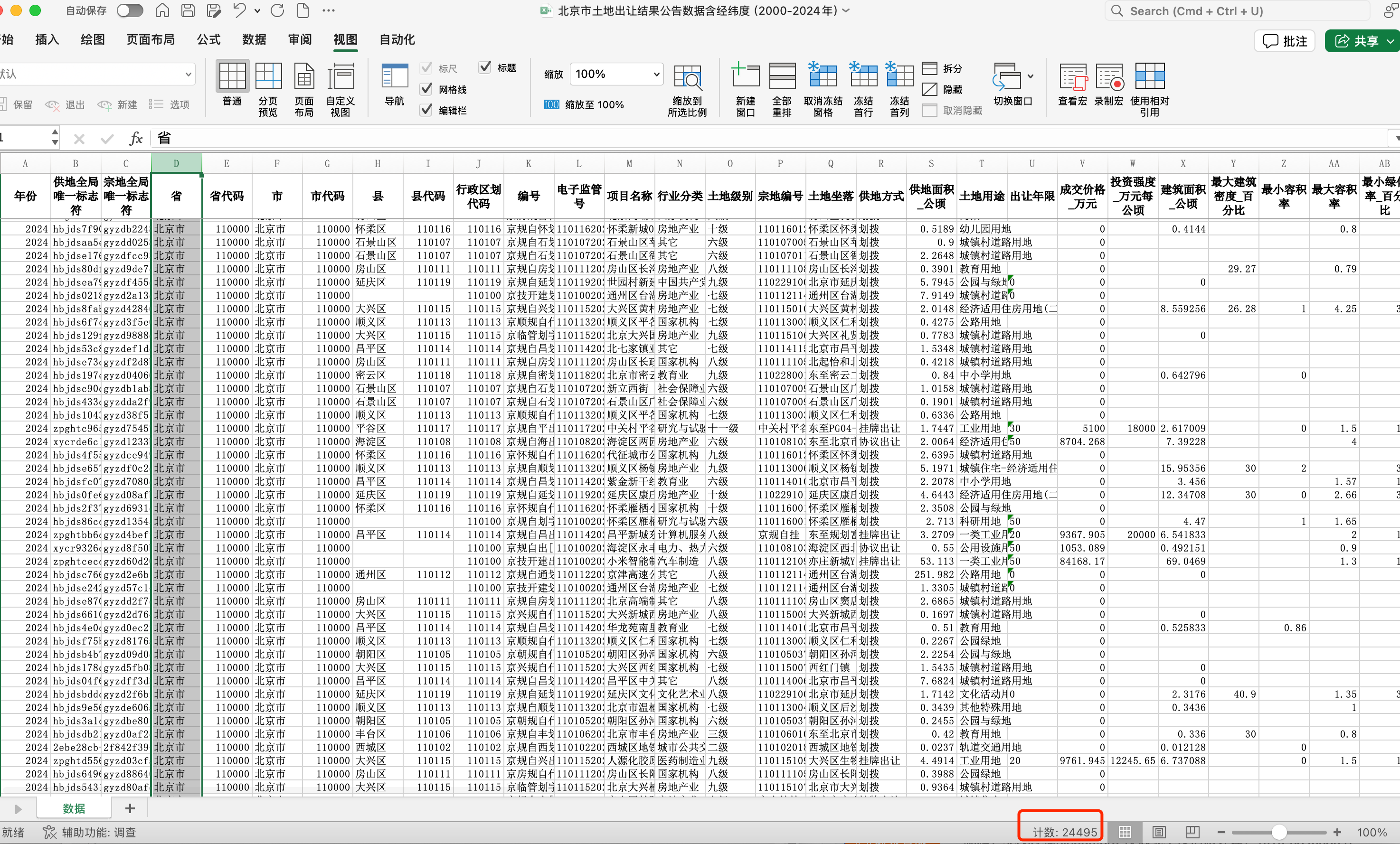 北京市土地出让结果公告数据北京市土地出让地块交易明细(2000-2024年,含经纬度)