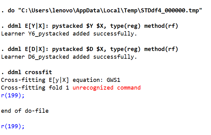 DDML代码时,出现Cross-fitting fold 1 unrecognized command,怎么操作都不行,求大佬们帮帮小弟