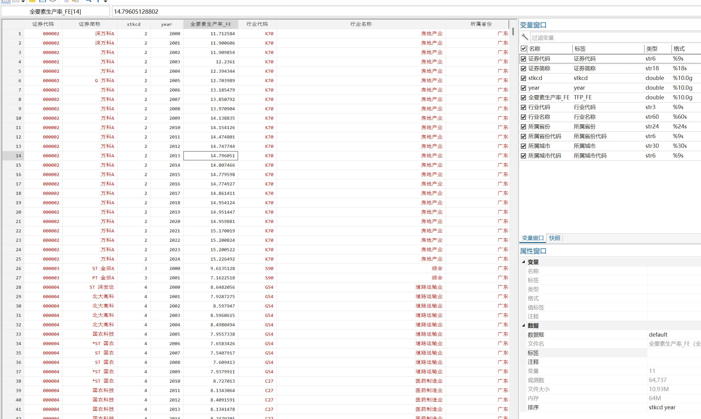 - 文件格式:Dta格式(使用Stata打开)、Xlsx格式(使用Excel打开)