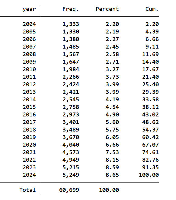 - 文件格式:Dta格式(使用Stata打开)、Xlsx格式(使用Excel打开)