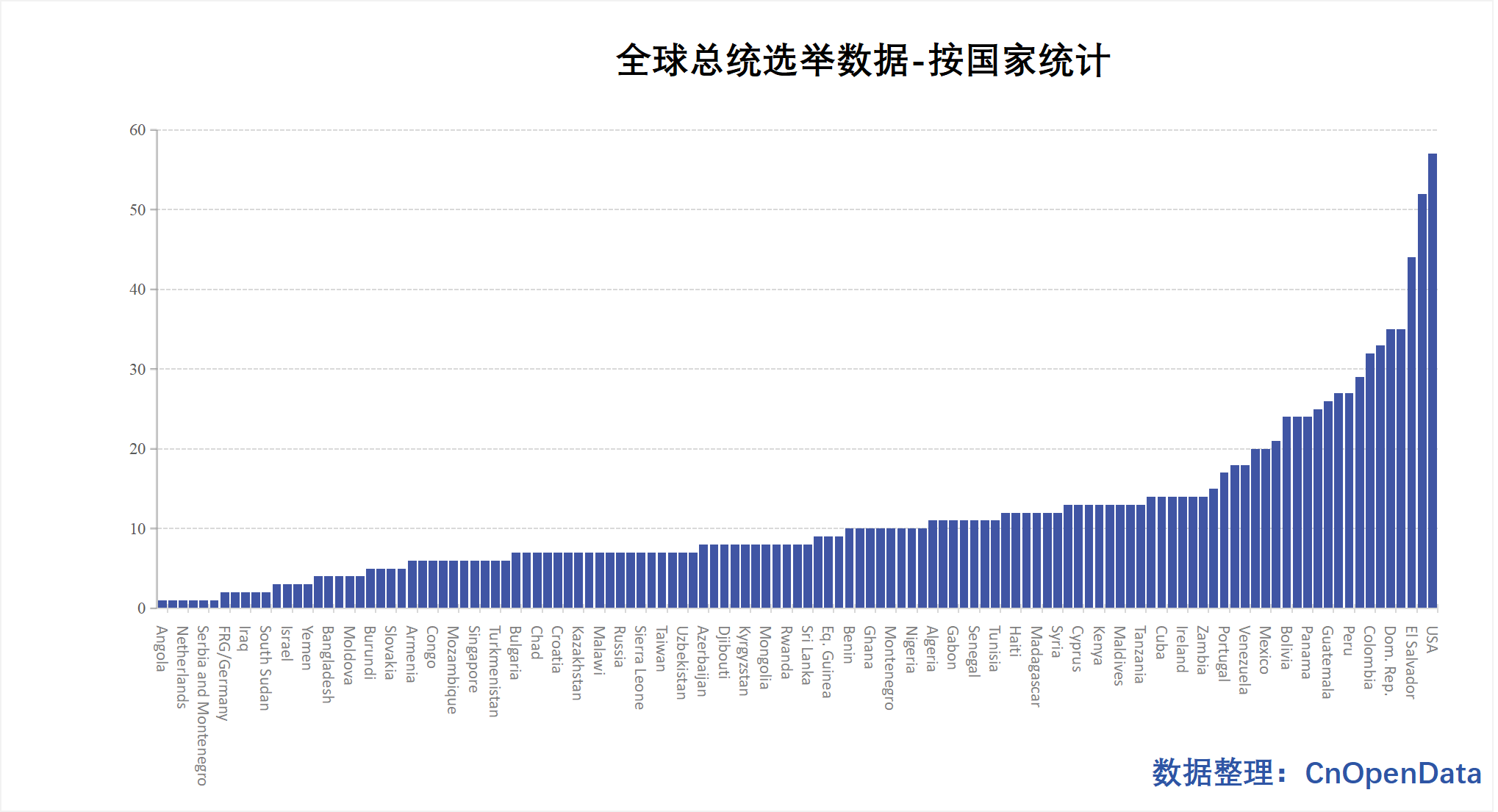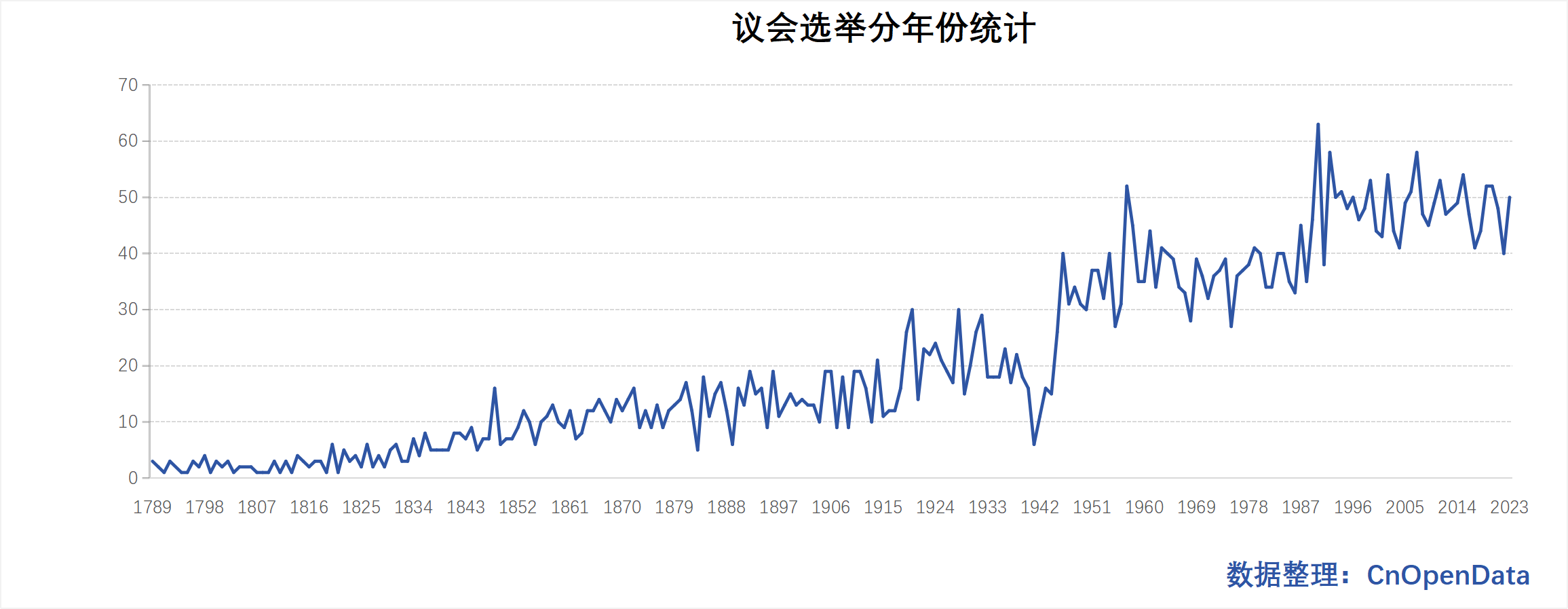 - 全球广覆盖范围、极长时间跨度:数据时间范围横跨200余年,涵盖212个国家和独立领土举行的6309次全国选举,包括1409次总统选举4900次议会选举。