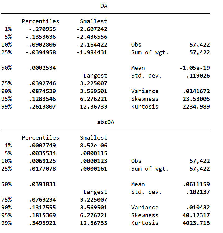 - 两种模型各三种版本结果:修正Jones模型结果(未缩尾未剔除)、修正Jones模型结果(已缩尾未剔除)、修正Jones模型结果(已缩尾已剔除金融STPT)