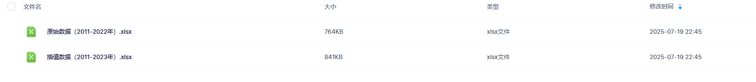 本数据借鉴张涛和李均超(2023)的研究方法,围绕包容性绿色增长的核心内涵,从经济增长、收入分配、福利普惠和环境保护四个维度,构建了地级市层面的综合评价指标体系。采用主客观相结合的赋权方法,测算出中国地级市2011-2023年的城市包容性绿色增长指数。数据内容包括2011-2022年的原始观测值,以及利用ipolate插值法和epolate外推法补全缺失值后的2011-2023年插值数据