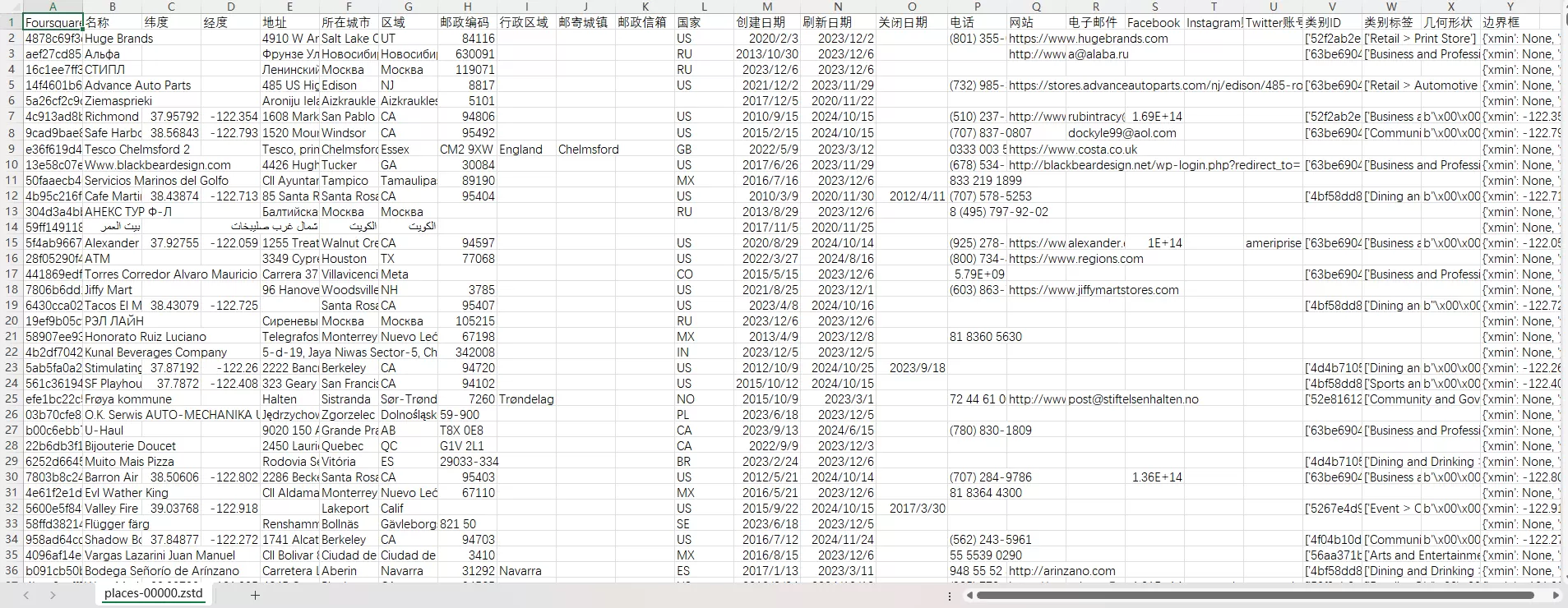 全球世界各国地区城市POI兴趣点热点数据2003-2024含经纬度坐标体育娱乐餐饮零售医疗社区等