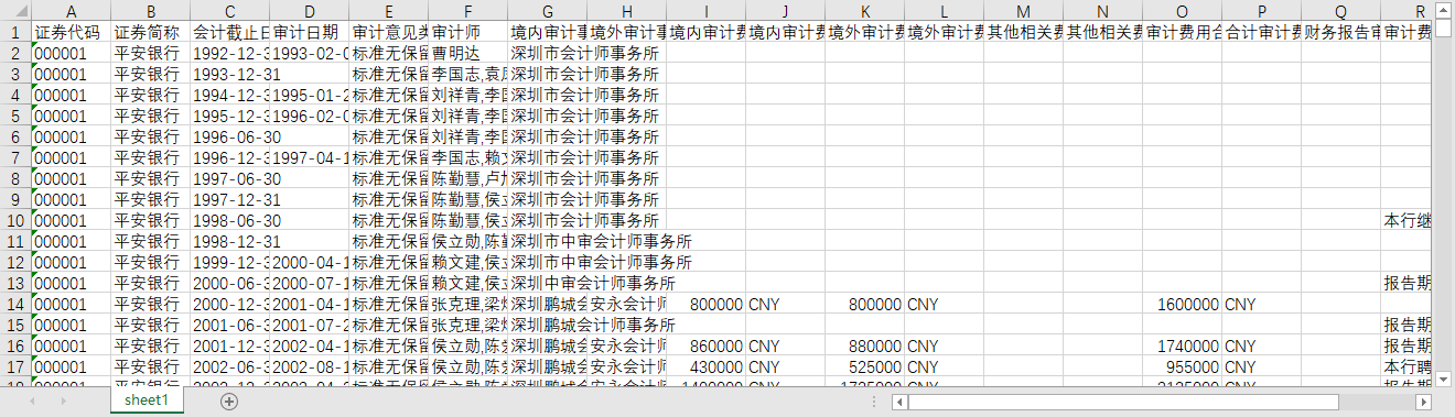 证券代码 证券简称 会计截止日期 审计日期 审计意见类型 审计师 境内审计事务所 境外审计事务所 境内审计费用金额 境内审计费用货币单位 境外审计费用金额 境外审计费用货币单位 其他相关费用金额 其他相关费用货币单位 审计费用合计 合计审计费用货币单位 财务报告审计意见 审计费用说明 境内审计事务所ID 境外审计事务所ID