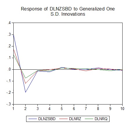 zmz 发表于 2012-10-3 10:00 脉冲响应的含义是,冲击对某个变量在不同时期的影响效果,长期趋于稳定表明冲击效应基本不变化了。方差分解 ...