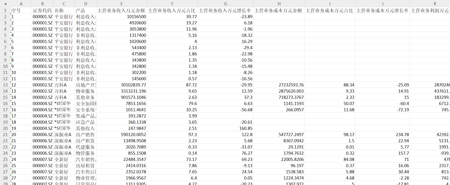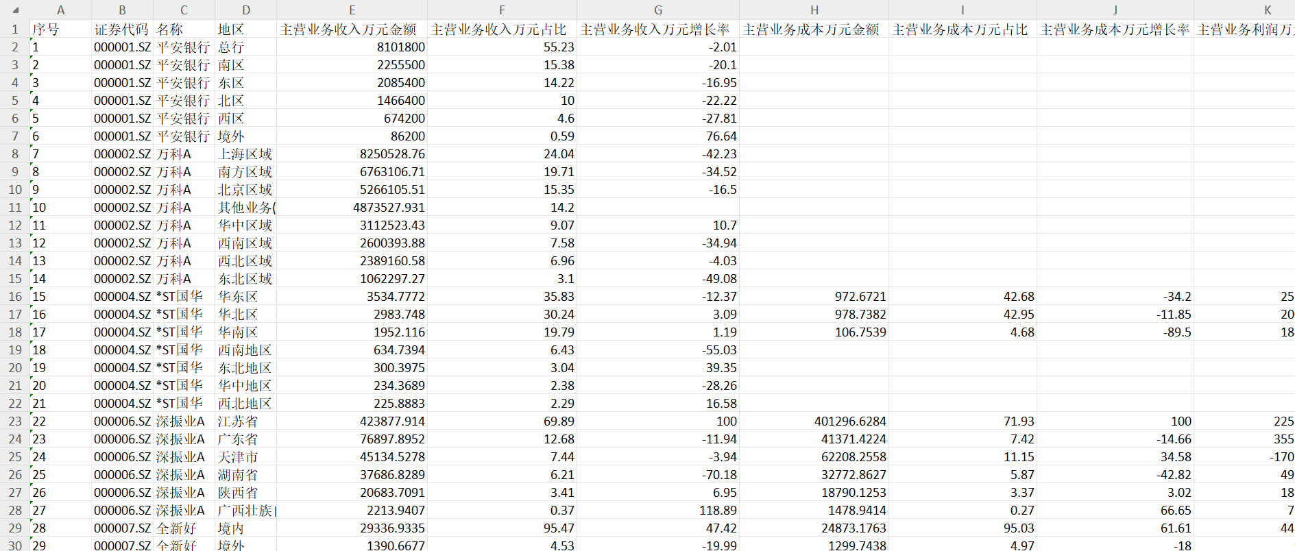 主营业务收入分地区、分行业、分产品数据2000-2020 主营构成