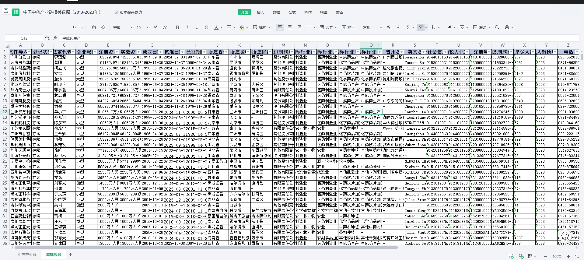 原文件导入名称 | 登记状态 | 法定代表人 | 企业规模 | 注册资本 | 实缴资本 | 成立日期 | 核准日期 | 营业期限 | 所属省份 | 所属城市 | 所属区县 | 企业(机构)类型 | 国标行业门类 | 国标行业大类 | 国标行业中类 | 国标行业小类 | 曾用名 | 英文名 | 统一社会信用代码 | 纳税人识别号 | 注册号 | 组织机构代码 | 参保人数 | 参保人数所属年报 | 电话 | 更多电话 | 企业地址 | 通信地址 | 官网 | 邮箱 | 更多邮箱 | 经营范围 | 登记机关 | 纳税人资质 | 企业简介 | 最新年报年份 |