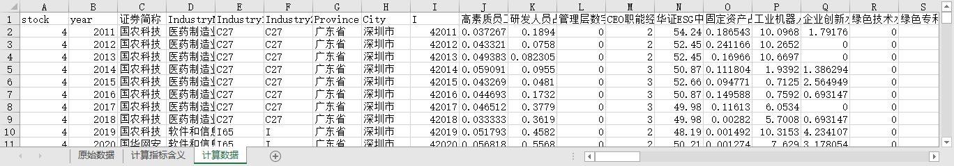 stock year 证券简称 IndustryName Industry1 Industry2 Province City I 高素质员工 研发人员占比 管理层数字化背景 CEO职能经历丰富度 华证ESG中E得分 固定资产占比 工业机器人渗透度 企业创新水平 绿色技术水平 绿色专利占比 智能化水平 数字资产占比 x_高素质员工 x_研发人员占比 x_管理层数字化背景 x_CEO职能经历丰富度 x_华证ESG中E得分 x_固定资产占比 x_工业机器人渗透度 x_企业创新水平 x_绿色技术水平 x_绿色专利占比 x_智能化水平 x_数字资产占比 高素质员工_sum y_高素质员工 研发人员占比_sum y_研发人员占比 管理层数字化背景_sum y_管理层数字化背景 CEO职能经历丰富度_sum y_CEO职能经历丰富度 华证ESG中E得分_sum y_华证ESG中E得分 固定资产占比_sum y_固定资产占比 工业机器人渗透度_sum y_工业机器人渗透度 企业创新水平_sum y_企业创新水平 绿色技术水平_sum y_绿色技术水平 绿色专利占比_sum y_绿色专利占比 智能化水平_sum y_智能化水平 数字资产占比_sum y_数字资产占比 k y_lny_高素质员工 y_lny_研发人员占比 y_lny_管理层数字化背景 y_lny_CEO职能经历丰富度 y_lny_华证ESG中E得分 y_lny_固定资产占比 y_lny_工业机器人渗透度 y_lny_企业创新水平 y_lny_绿色技术水平 y_lny_绿色专利占比 y_lny_智能化水平 y_lny_数字资产占比 y_lny_高素质员工_sum y_lny_研发人员占比_sum y_lny_管理层数字化背景_sum y_lny_CEO职能经历丰富度_sum y_lny_华证ESG中E得分_sum y_lny_固定资产占比_sum y_lny_工业机器人渗透度_sum y_lny_企业创新水平_sum y_lny_绿色技术水平_sum y_lny_绿色专利占比_sum y_lny_智能化水平_sum y_lny_数字资产占比_sum e_高素质员工 e_研发人员占比 e_管理层数字化背景 e_CEO职能经历丰富度 e_华证ESG中E得分 e_固定资产占比 e_工业机器人渗透度 e_企业创新水平 e_绿色技术水平 e_绿色专利占比 e_智能化水平 e_数字资产占比 d_高素质员工 d_研发人员占比 d_管理层数字化背景 d_CEO职能经历丰富度 d_华证ESG中E得分 d_固定资产占比 d_工业机器人渗透度 d_企业创新水平 d_绿色技术水平 d_绿色专利占比 d_智能化水平 d_数字资产占比 d_sum w_高素质员工 w_研发人员占比 w_管理层数字化背景 w_CEO职能经历丰富度 w_华证ESG中E得分 w_固定资产占比 w_工业机器人渗透度 w_企业创新水平 w_绿色技术水平 w_绿色专利占比 w_智能化水平 w_数字资产占比 Score_高素质员工 Score_研发人员占比 Score_管理层数字化背景 Score_CEO职能经历丰富度 Score_华证ESG中E得分 Score_固定资产占比 Score_工业机器人渗透度 Score_企业创新水平 Score_绿色技术水平 Score_绿色专利占比 Score_智能化水平 Score_数字资产占比 NPRO