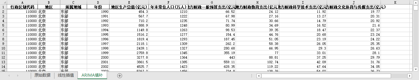 excel数据文件包原始数据(由于多年度指标不同存在缺失值)、线性插值、ARIMA填补三个版本,提供您参考使用。