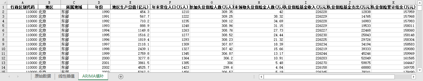 ARIMA填补。基于ARIMA模型,利用同一地区的时间序列数据,对缺失值进行预测填补。