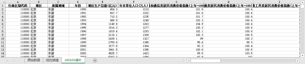 ARIMA填补。基于ARIMA模型,利用同一地区的时间序列数据,对缺失值进行预测填补。