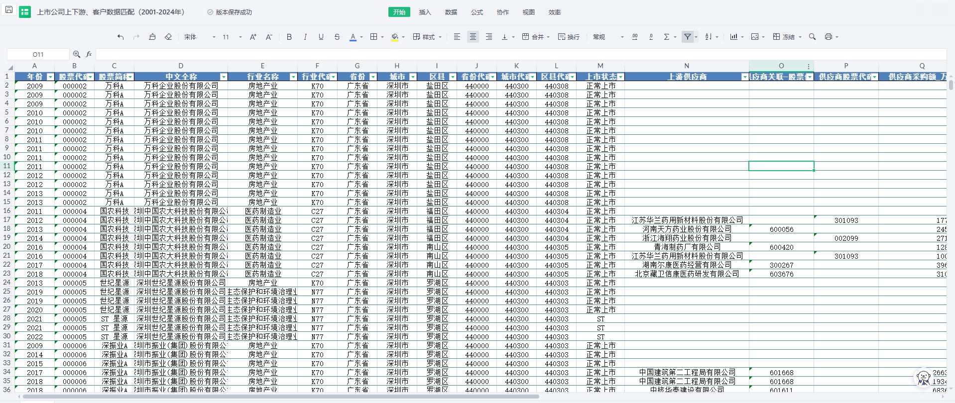 一、数据介绍数据名称:上市公司上下游供应商、客户数据匹配