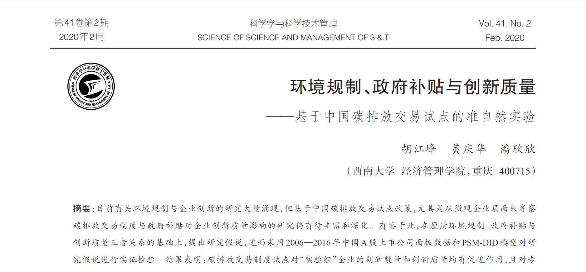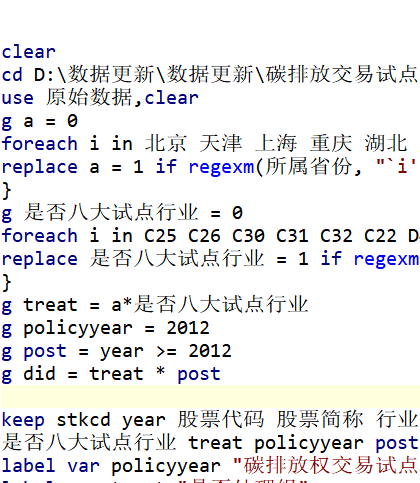treat:属于石化、化工、建材、钢铁、有色、造纸、电力和航空等八个试点行业并且处在北京、天津、上海、重庆、湖北、广东、深圳和福建等八个试点地区的上市公司为处理组,赋值为1;否则为0。