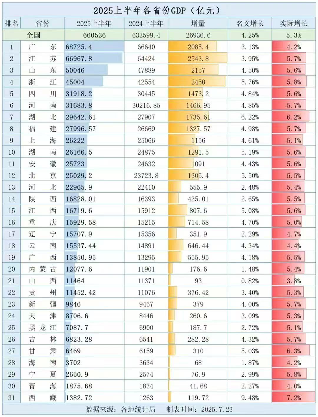 广东拖后腿了,上半年全国GDP增速5.3%,广东只有4.2%,不知道咋回事。