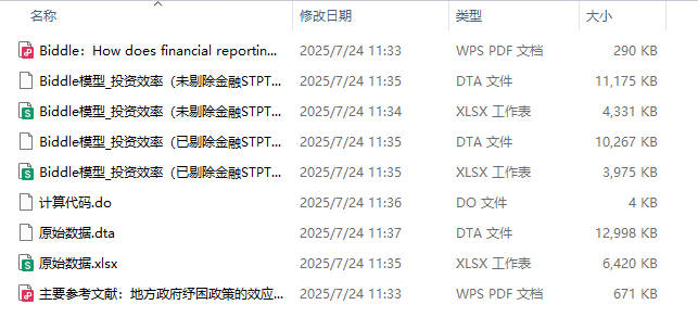 - 两个版本:投资效率Biddle模型(未剔除金融STPT)、投资效率Biddle模型(已剔除金融STPT)
