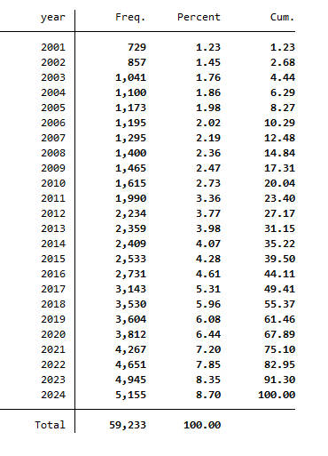 - 文件格式:Dta格式(使用Stata打开)、Xlsx格式(使用Excel打开)