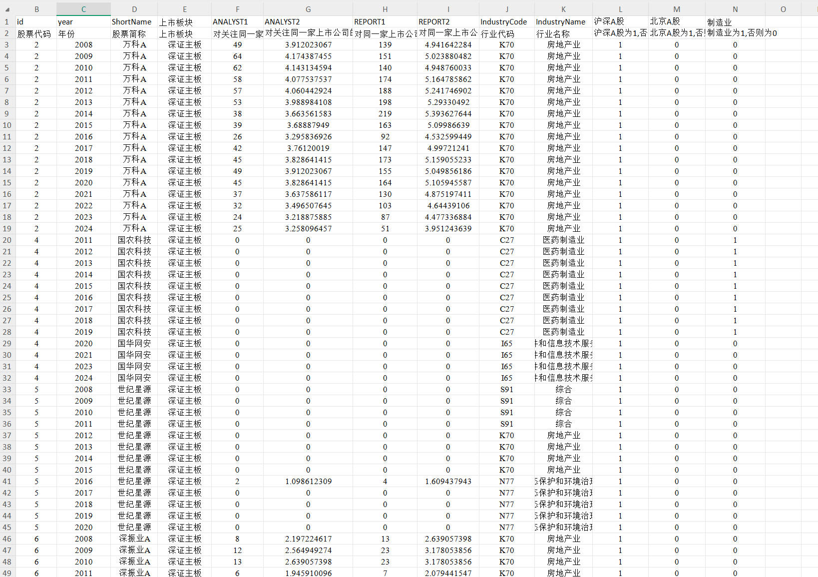 测算方式:参考《证券市场导报》关静怡(2020)老师的做法,采用分析师跟踪人数和研报数量测度分析师的跟踪情况