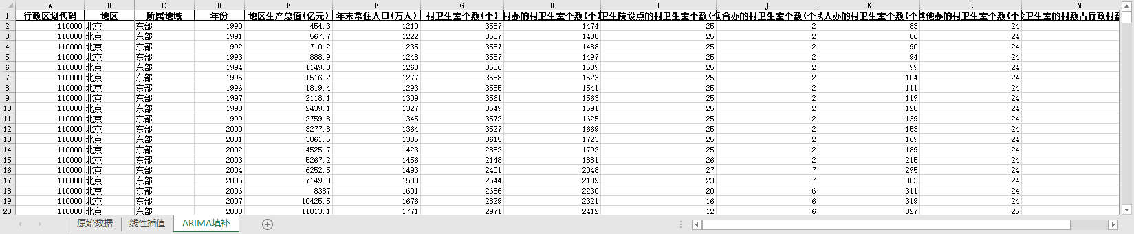 ARIMA填补。基于ARIMA模型,利用同一地区的时间序列数据,对缺失值进行预测填补。