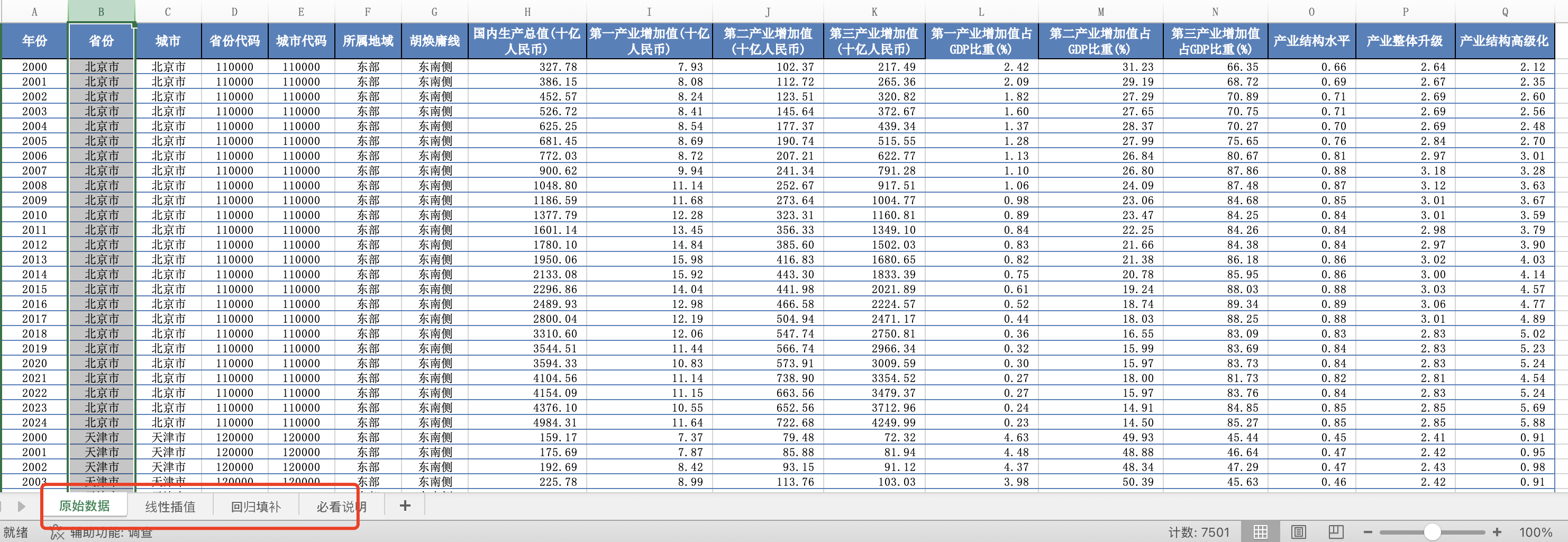 全国地级市产业升级与结构高级化指标面板数据(2000–2024年,含多版本补全)