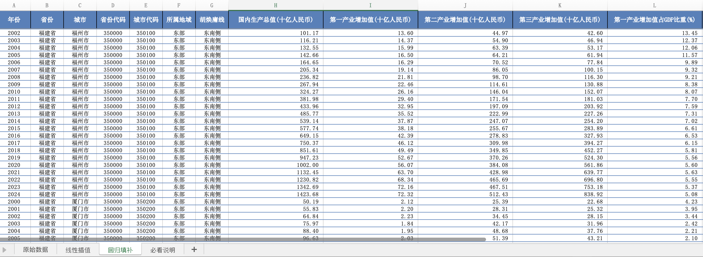 版本说明:原始数据、线性插值补全版、回归填补版(共3种)