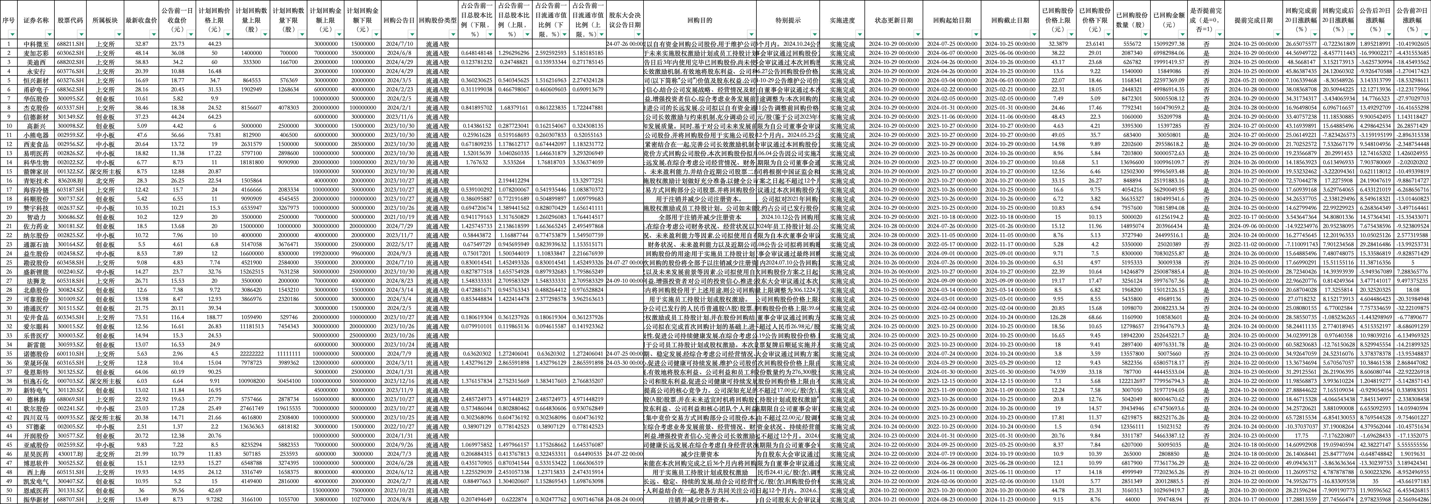 【论坛首发】【最新数据】【高质量】上市公司股票回购相关数据4809条EXCEL