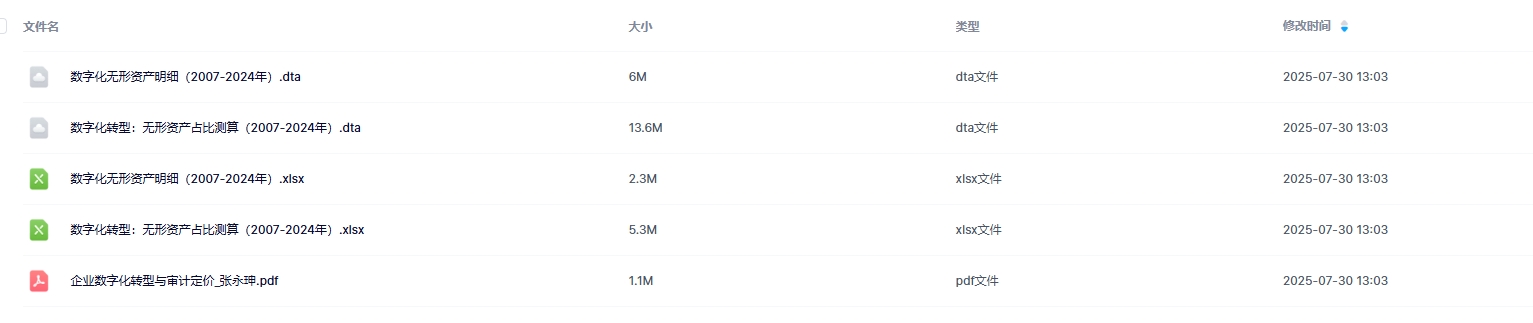 一、数据介绍数据名称:企业数字化转型:数字化无形资产占比测算