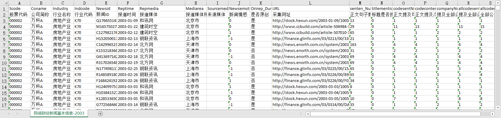 上市公司财经新闻数据库1994-2024含网络新闻报刊财经新闻报道信息及量化统计日度数据