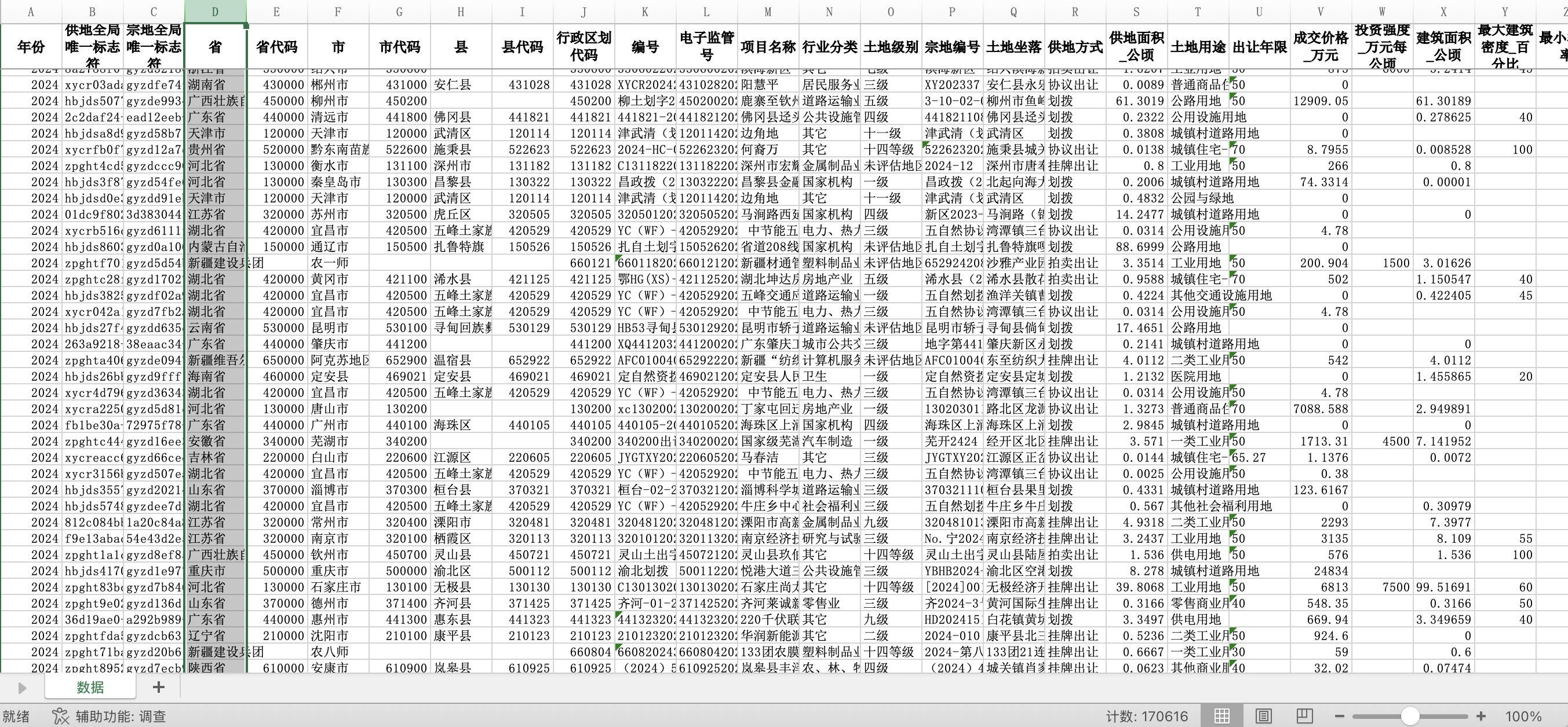 数据名称:省市区县土地出让结果信息明细数据