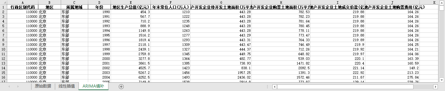 ARIMA填补。基于ARIMA模型,利用同一地区的时间序列数据,对缺失值进行预测填补。