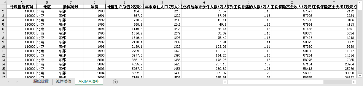 excel数据文件包原始数据(由于多年度指标不同存在缺失值)、线性插值、ARIMA填补三个版本,提供您参考使用。