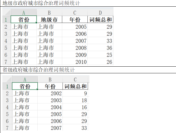 在省级政府城市综合治理注意力词频分析中,指标为省份-年份-词频总和(含所有关键词词频)。