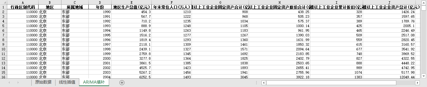 excel数据文件包原始数据(由于多年度指标不同存在缺失值)、线性插值、ARIMA填补三个版本,提供您参考使用。