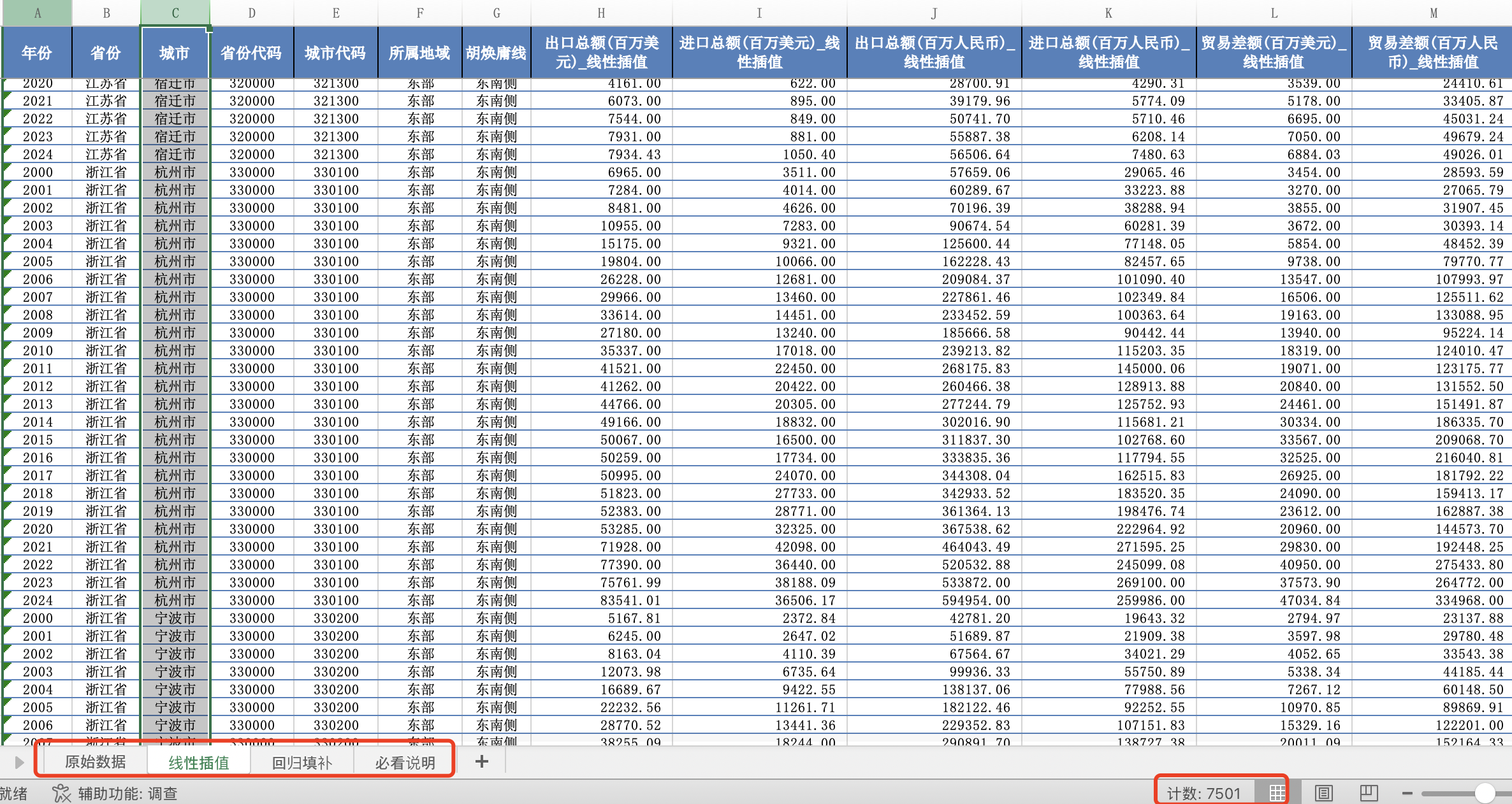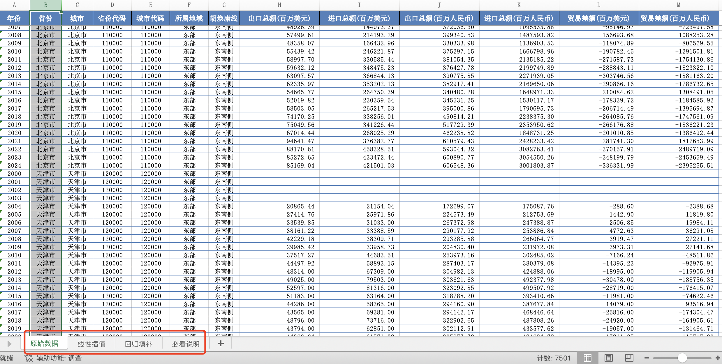 数据版本:原始数据、线性插值、回归补齐(无缺失)三种版本