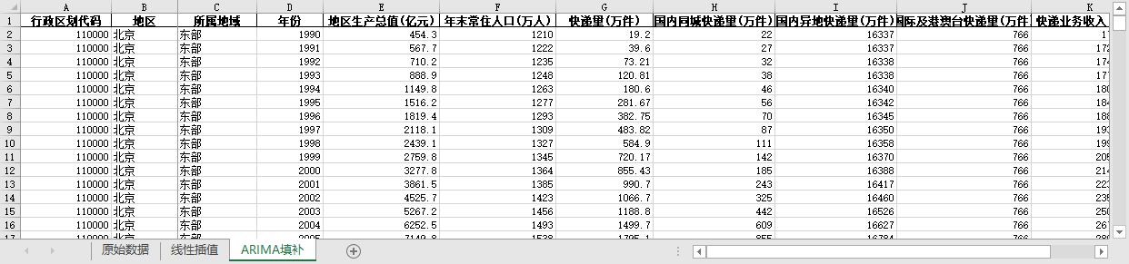 ARIMA填补。基于ARIMA模型,利用同一地区的时间序列数据,对缺失值进行预测填补。