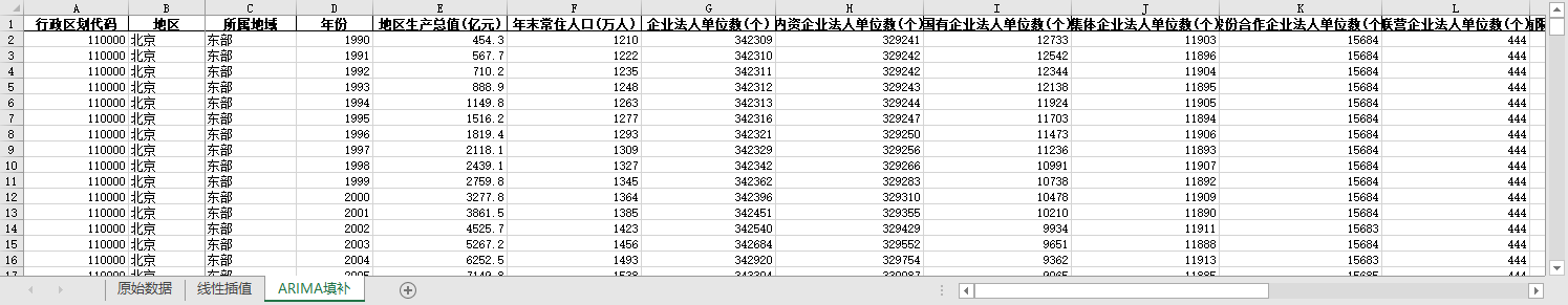 ARIMA填补。基于ARIMA模型,利用同一地区的时间序列数据,对缺失值进行预测填补。