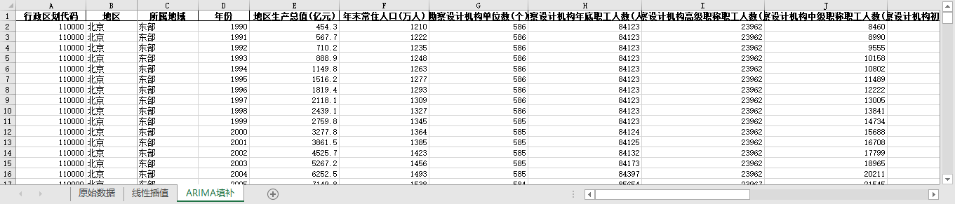excel数据文件包原始数据(由于多年度指标不同存在缺失值)、线性插值、ARIMA填补三个版本,提供您参考使用。