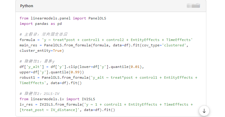 在实证论文中,“主假设检验”和“稳健性检验”是前后呼应的两环:前者回答“核心结论是否成立”,后者回答“结论是否只是巧合或依赖于特定设定”。下面用“一张逻辑图 + 三种常见套路 + 代码模板”帮你快速把稳健性检验嵌入主假设流程,国家自科/社科基金结题、中英文期刊均适用。