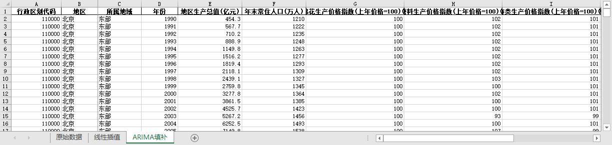 excel数据文件包原始数据(由于多年度指标不同存在缺失值)、线性插值、ARIMA填补三个版本,提供您参考使用。