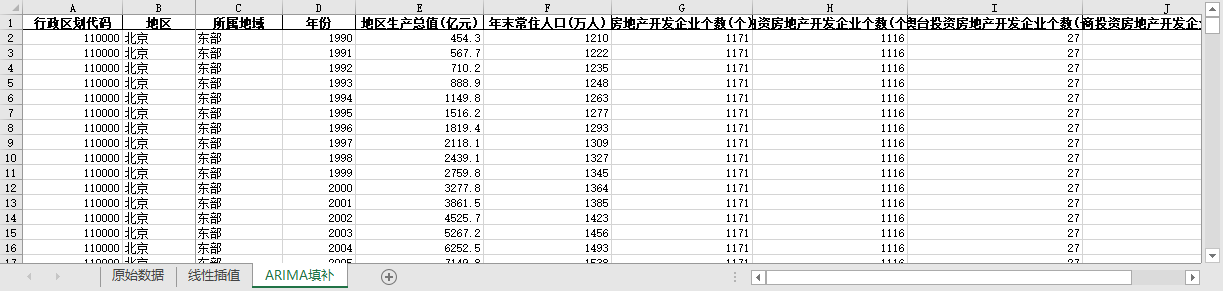 ARIMA填补。基于ARIMA模型,利用同一地区的时间序列数据,对缺失值进行预测填补。