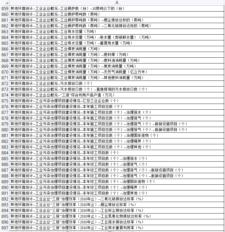 数据名称:中国环境统计年鉴面板数据