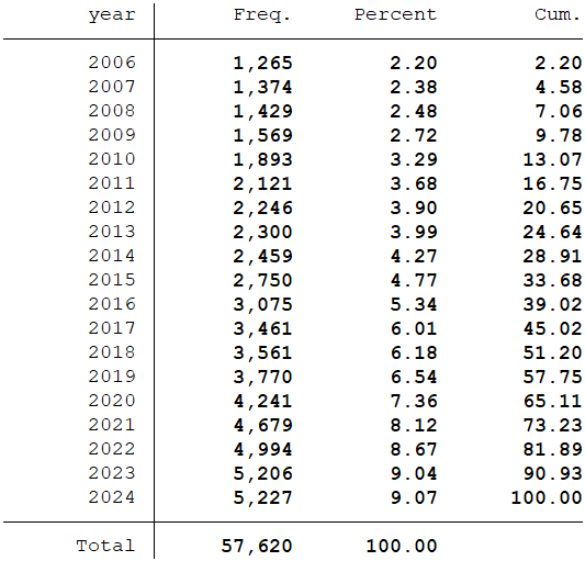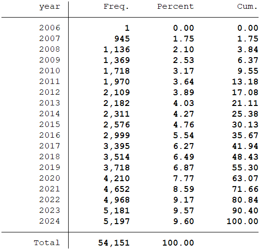 样本选择:全部A股2006-2024年数据(“ZF补助”在数据库中的初始数据是从2006年开始,所以数据起点选择为2006年)