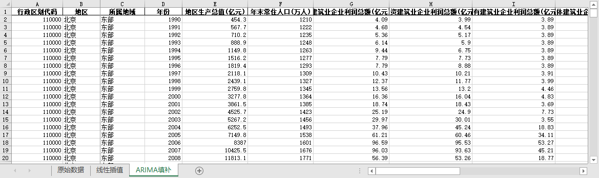 ARIMA填补。基于ARIMA模型,利用同一地区的时间序列数据,对缺失值进行预测填补。