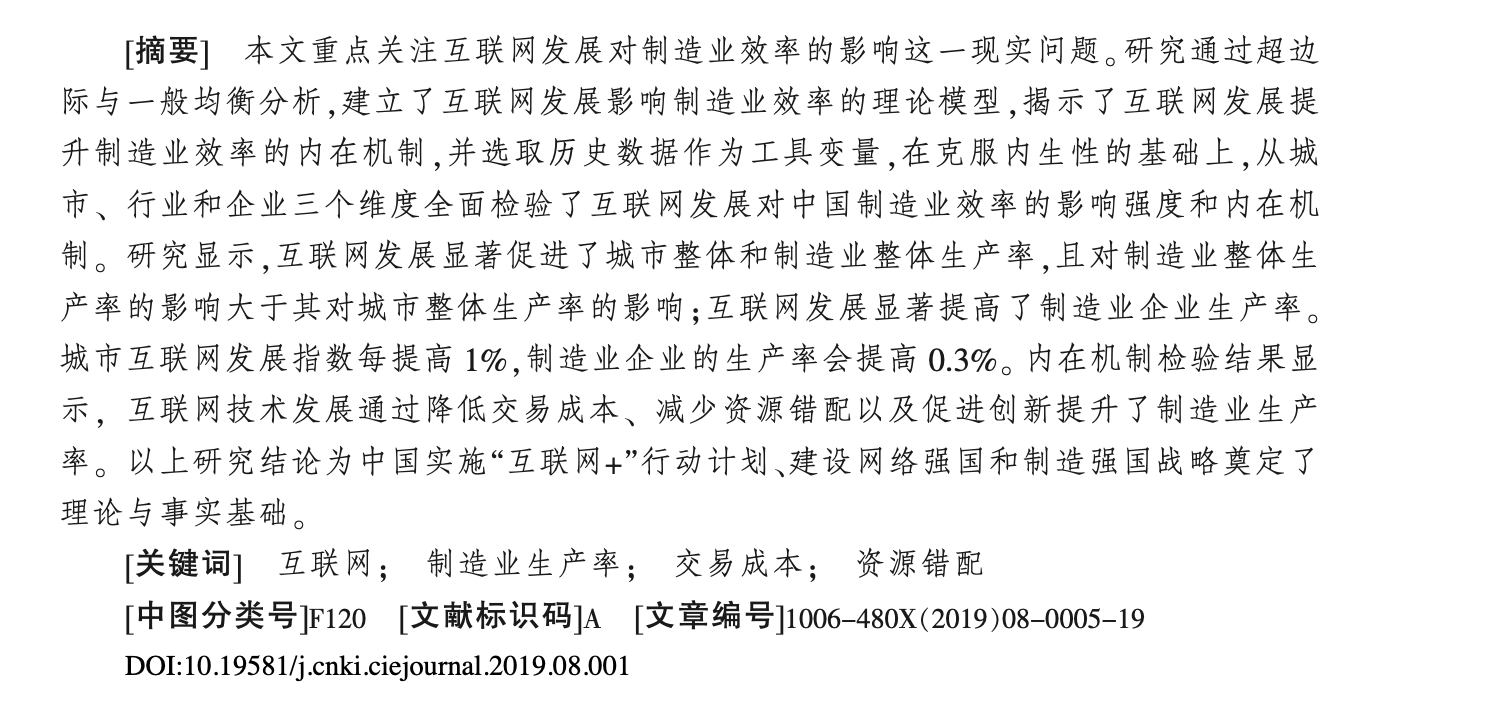 [1]黄群慧,余泳泽,张松林.互联网发展与制造业生产率提升:内在机制与中国经验[J].中国工业经济,2019,(08):5-23.DOI:10.19581/j.cnki.ciejournal.2019.08.001.
