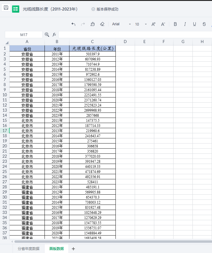 省份 | 年份 | 光缆线路长度(公里) | 年末常住人口(万人) | 光缆密度 |