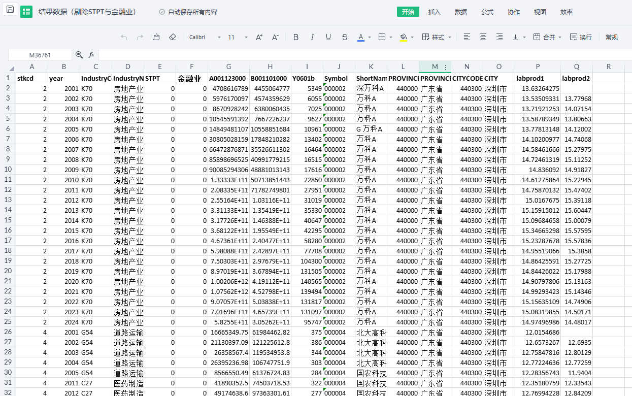参考《管理科学学报》李广众(2018)老师的研究,使用(销售收入+存货变动)/员工人数,取对数,测度企业劳动生产率