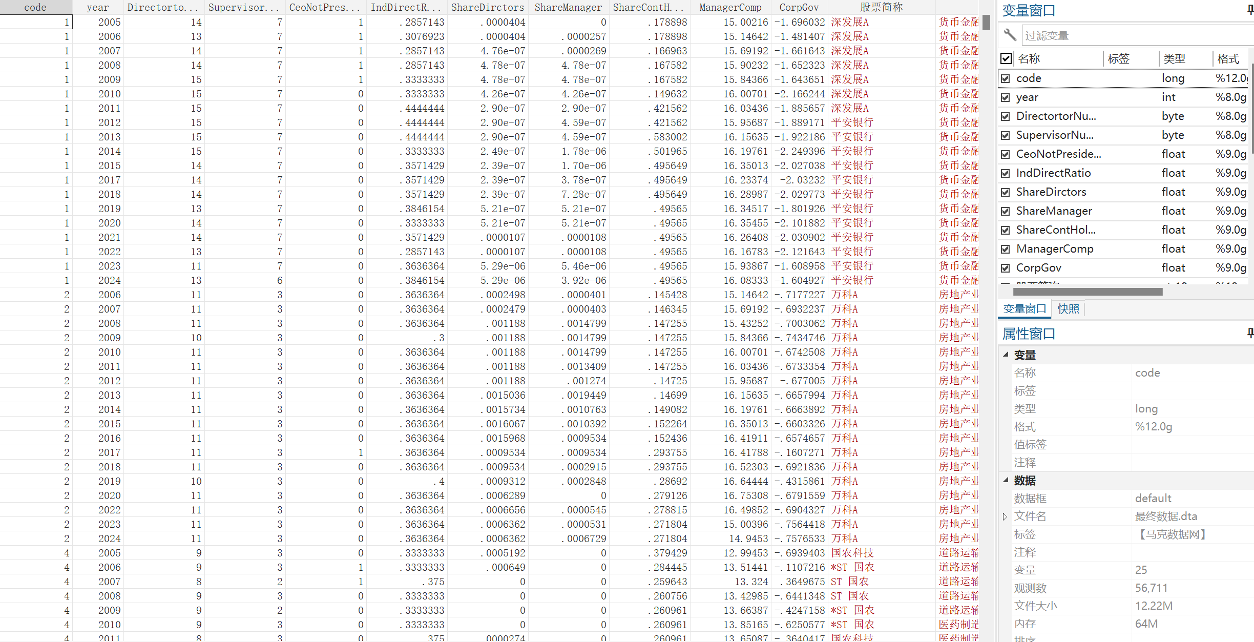 数据格式:面板数据,excel、dta、dofile