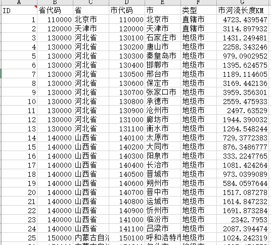 中国各个城市的河流长度数据.xlsx