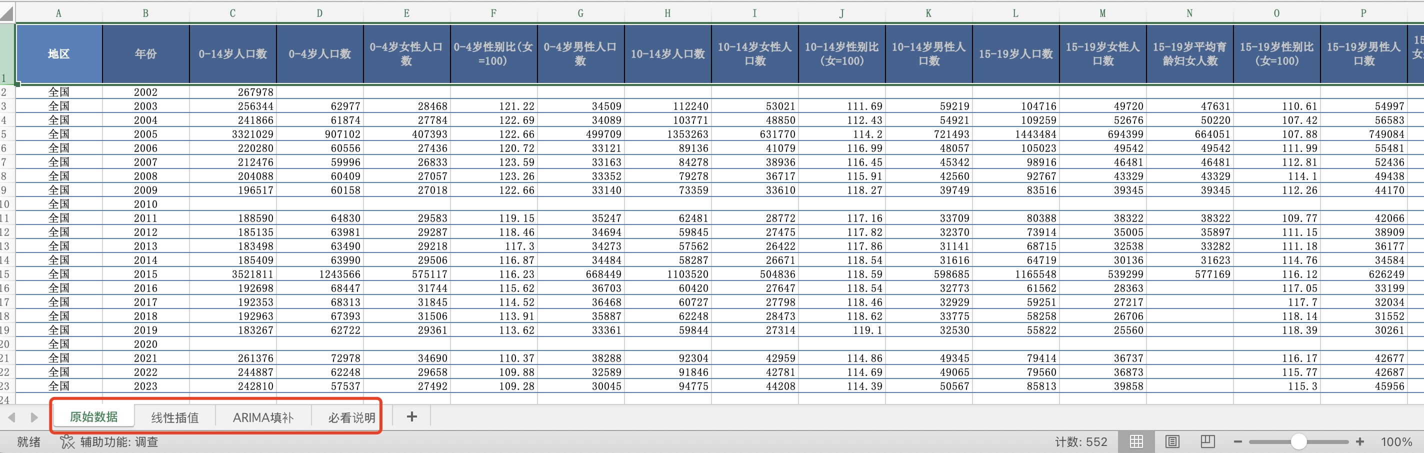 版本说明:原始版、线性插值版、回归填补版(3个版本)